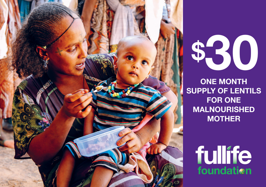 $30 provides 1 months lentils to a malnourished Afar mother so she can feed her baby